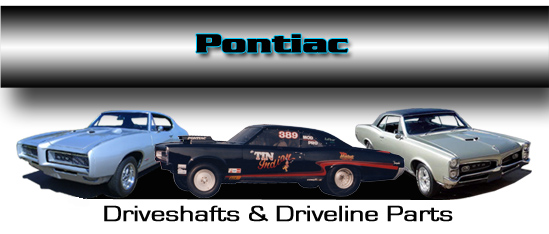 Denny's Driveshaft offers a selection of various Pontiac Driveshafts and Driveline Parts for Le Mans, GTO, Catalina, Grand Prix and Bonneville or most any model Pontiac. We have a variety of driveshafts, transmission slip yokes, pinion yokes and attaching hardware, universal joints, axles and differential parts, double cardan CV parts, seals, bearings and more for most Pontiac drivelines. Replacement rear end pinion yokes for the 8.5 inch 10 bolt in the stock 3R size or 1310, 1330 and 1350 series. We offer our super smooth running High Speed Balanced Steel and 6061-T6 Aluminum Driveshafts built specifically for the demanding Pontiac enthusiast. Choose from our Heavy Duty or Nitrous Ready versions or the ever popular 6061-T6 Aluminum version. They are available in 3.0, 3.5 inch or 4 inch tube diameters and in 1310 and 1330 series or yours can be built with the stock size 3R u-joints. Choose 1350 series for the ultimate in strength and reliability.