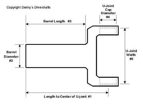 • Length to center of u-joint... Dimension #1 = 5 3/4 inches