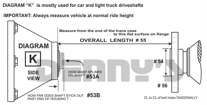 • Diagram K: 57 inches max for number 55 and requires the purchase of a flange yoke