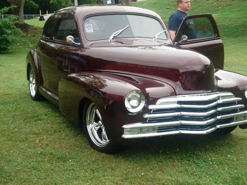 Sent by Larry R 1948 Chevy Coupe, 454 all roller 475 hp 400r4 built by GearStar. 10 bolt gm rear end w/Yukon 342 posi and axels. AC / PS Power seats and windows. Dark Garnet